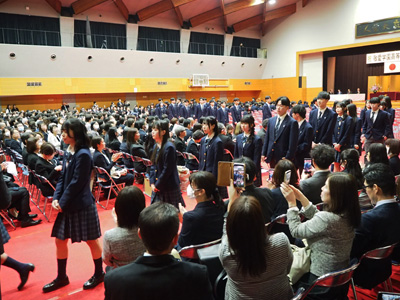 卒業生410名が晴れやかな表情で式に臨み、教職員、保護者の皆さまに見守られながら、学び舎を巣立っていきました。