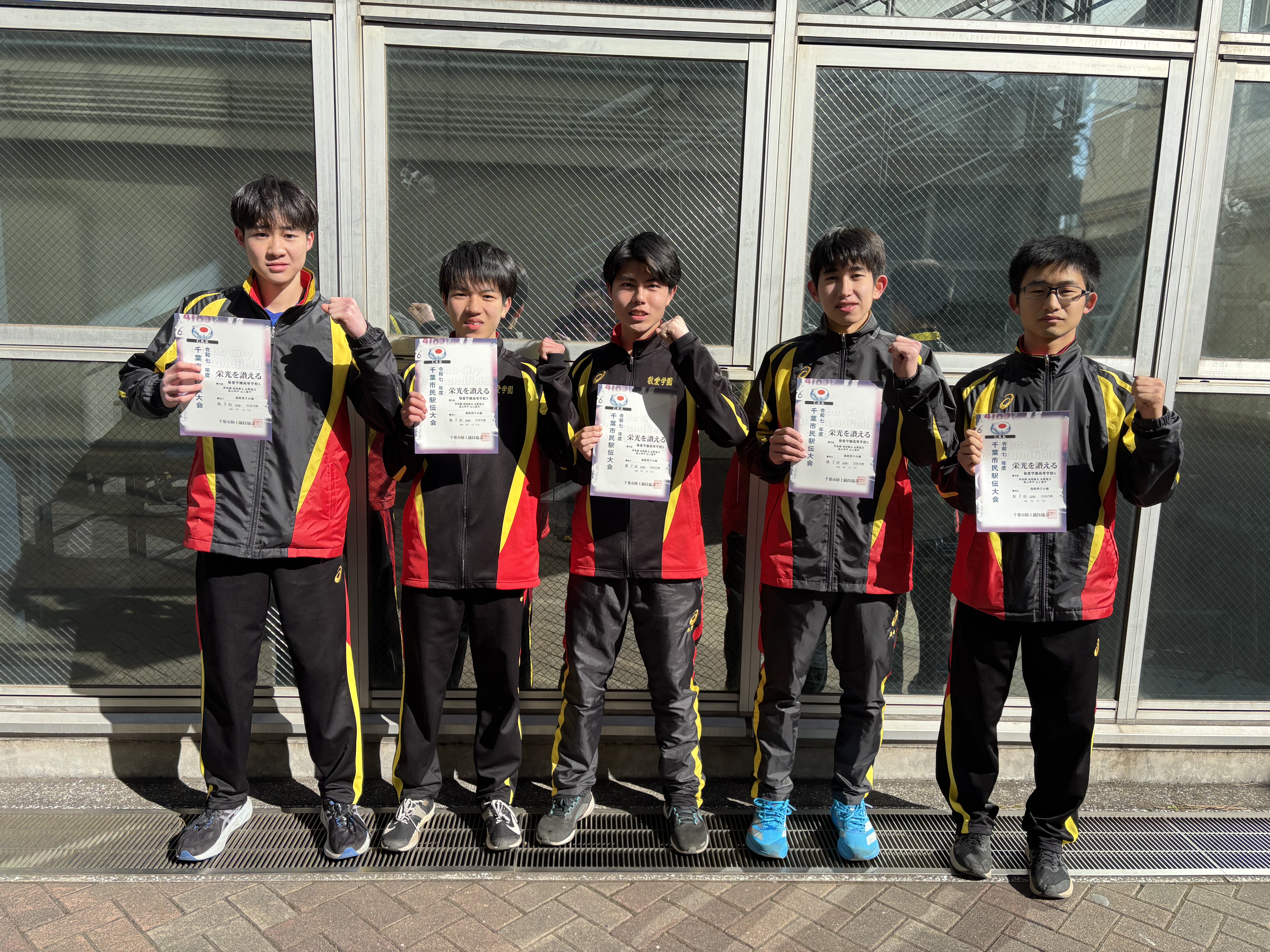 続く2区は、伴君同様、中学時代まで競技未経験者ですが、着々と成長を遂げており、次期エースとして期待される坂西春太君。区間賞を目標にさせてはいましたが、3秒の差で惜しくも区間2位。しかし、区間1位の選手は1500mのベスト記録を比べても10秒以上も速い選手です。それを3秒差まで縮めてきただけでも健闘してくれたと思います。そして3区は永野琉月君(2年)。上述の2名同様、中学時代まで競技未経験者で、かつ競歩をメインとした選手です。ただし、競歩では県新人大会では入賞し、国体最終選考会では優勝しています。ですから、意地を見せて練習よりも良い記録で走り切ってくれ、坂西君同様、区間2位で、チーム順位を再び1位に押し上げてくれました。続く4区は、畠山幸平君(1年)。彼もまた中学時代まで競技未経験者。しかも、駅伝に関しては初出場です。そのような状況にもかかわらず、力走してくれ、区間4位ではありましたが、それでもチーム順位1位をキープしてくれ、アンカーへ。そしてアンカーの5区は山上恭平君(2年)。彼もまた中学時代まで競技未経験者で2度目の駅伝出場でしたが、前半から積極的なレース運びをしてくれ、区間4位で、チーム順位は2位でフィニッシュ!!惜しくも最後に逆転を許してしまい、優勝は逃したものの、全員が陸上競技未経験者で、この総合順位は残せるでしょうか。そこが当部の強さです。いくら入部当初は力や経験がなくても、当部で仲間たちと必死に練習に励めば、必ず強くなりますから。